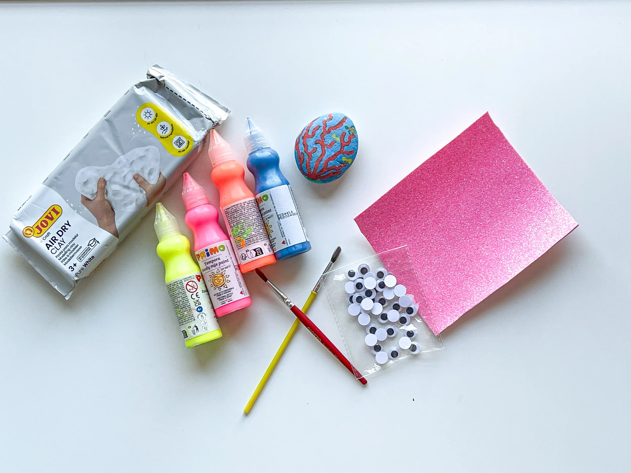 Need art supplies? These make fantastic creativity-boosting gifts: watercolours, instant clay, tempera paint for clay, acrylic markers for stones.
