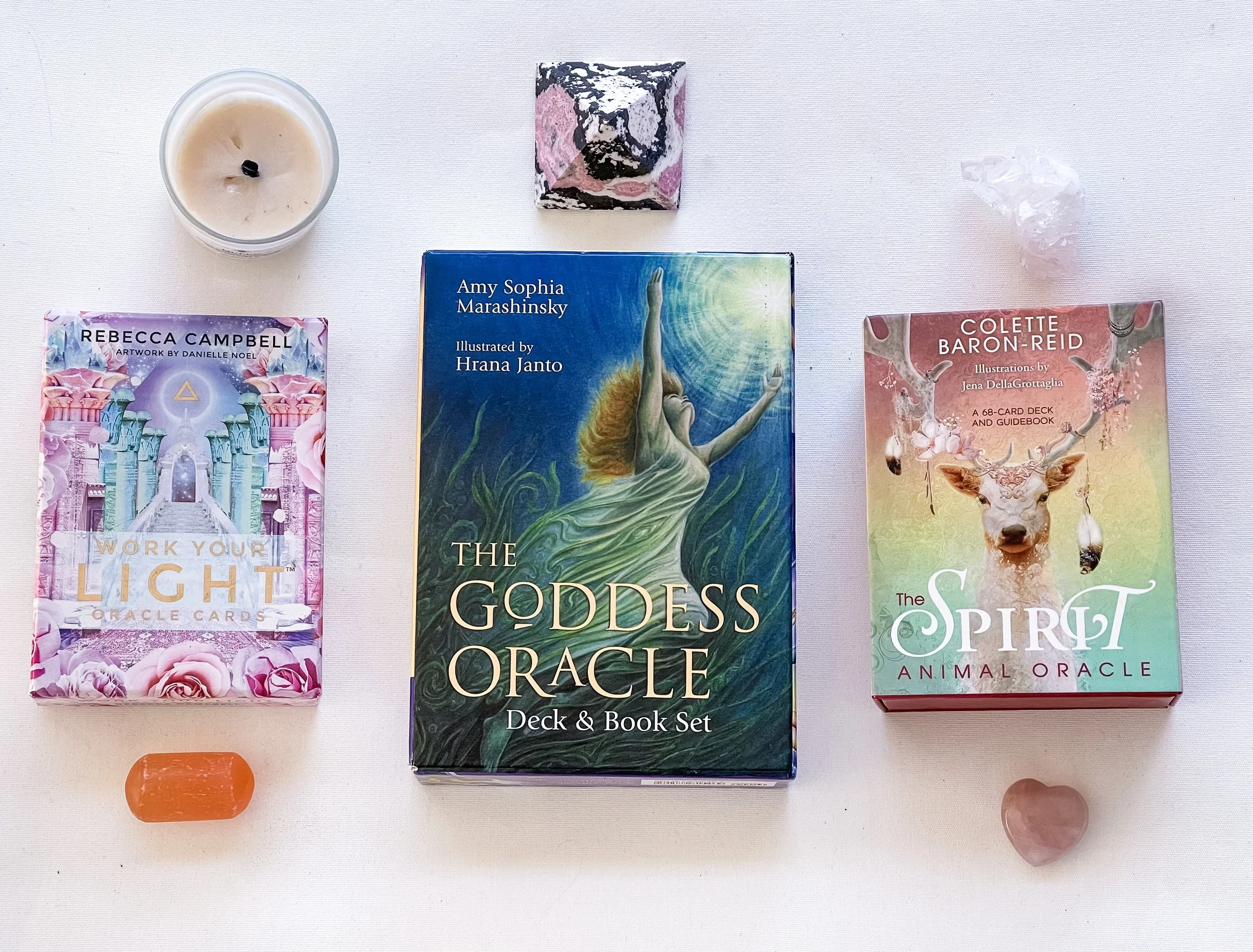 My coach Jennifer first introduced me to this powerful tool through her recommendation of the Goddess Oracle. For those new to this, let me break it down. And no, it’s not a tarot card deck that will predict your future.